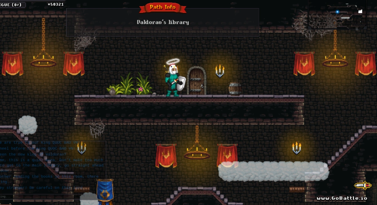 The Library is a recent addition to GoBattle.io. It contains 2 dungeons and a library section. The library is located in Valdoran's Sky Castle (floating high above Valdoran Castle). There is an entrance above the Sky Castle to the sky path, where players could get the Relic Hunter item Stardust for quest.