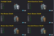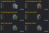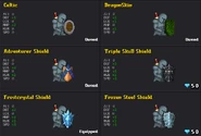 All the other shields: (which cost 50 gems each) DEF+2 MHP+1 RGN+1 SPD+1
